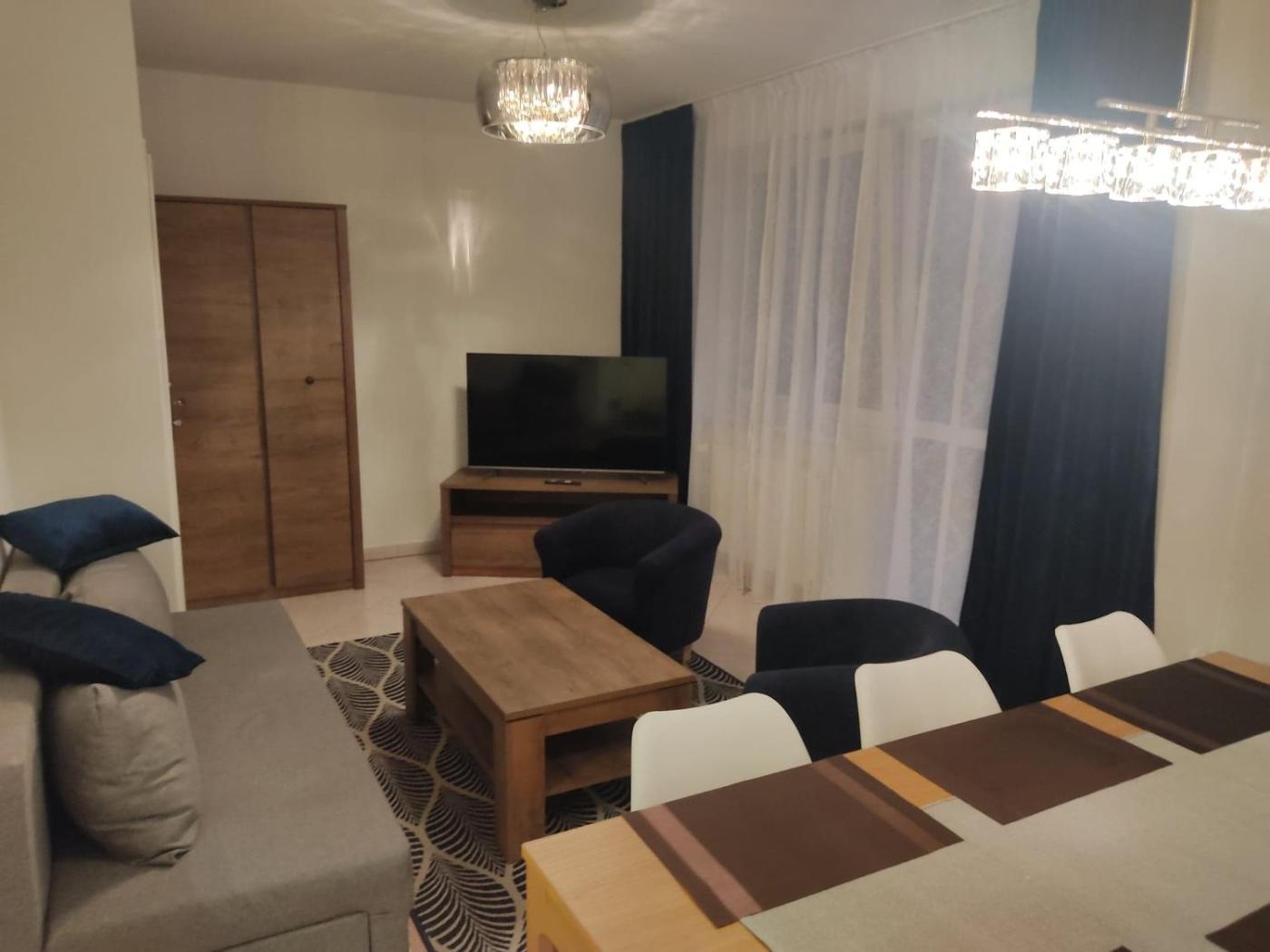 Apartament z 2 sypialniami. In the kitchenette, guests will find a stovetop, a refrigerator, a dishwasher and kitchenware. The spacious apartment offers a washing machine, a private entrance, a coffee machine, a flat-screen TV with satellite channels, as well as city views. The unit has 4 beds. Apartament - 6 osobowy. Powierzchnia pokoju ok.: 63 mkw.