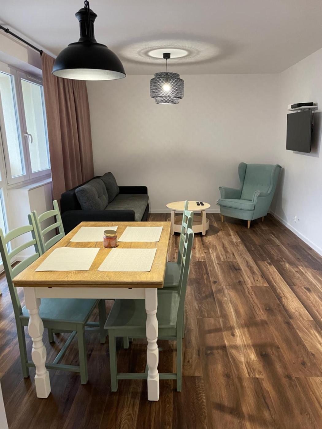Apartament z 2 sypialniami. The well-fitted kitchen features a stovetop, a refrigerator, a dishwasher and kitchenware. The spacious apartment offers a washing machine, a dining area, an electric kettle, heating, as well as a flat-screen TV. The unit offers 3 beds. Apartament - 6 osobowy. Powierzchnia pokoju ok.: 65 mkw.