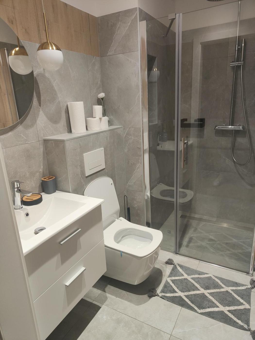 Apartament z 1 sypialnią. This apartment consists of 1 bedroom, a kitchenette and 1 bathroom with a shower and a hairdryer. Guests can make meals in the kitchenette that is equipped with a stovetop, a refrigerator, kitchenware and a tea and coffee maker. Featuring a balcony with a quiet street view, this apartment also provides a dining area and a flat-screen TV. The unit offers 1 bed. Apartament - 2 osobowy. Powierzchnia pokoju ok.: 25 mkw.